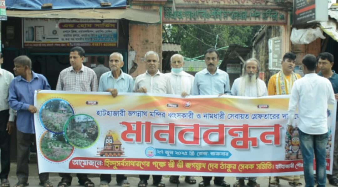 বক্তারা বলেন, হাটহাজারী বরাবরই সাম্প্রদায়িক সম্প্রীতির অনন্য দৃষ্টান্ত। এখানে সব ধর্মের মানুষ মিলেমিশে বসবাস করে আসছে। এক সময় এখানে রথযাত্রার মতো মহোৎসব হতো, যা এখন বন্ধ হয়ে গেছে। তারা অবিলম্বে মন্দির পুনর্নির্মাণ ও রথযাত্রা পুনরায় চালুর দাবি জানান।